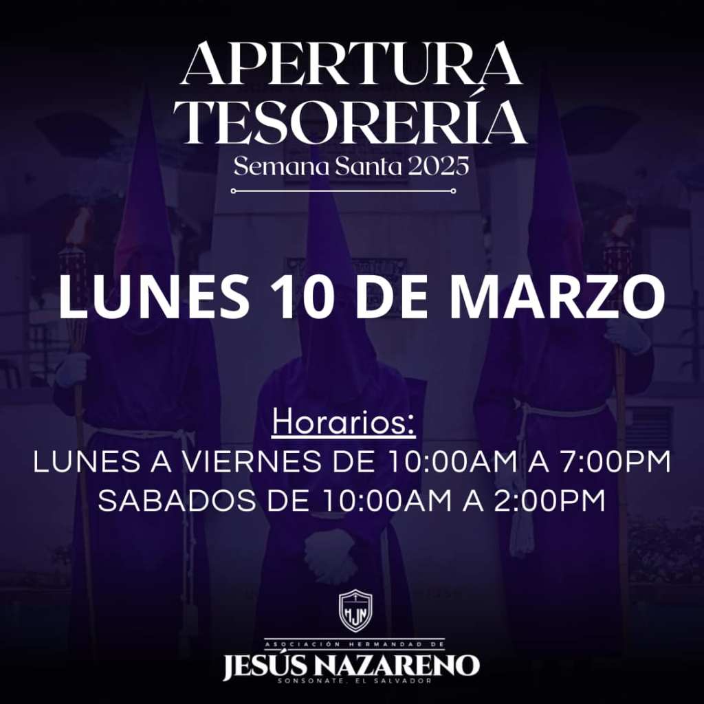 La Junta Directiva de la Asociación Hermandad de Jesús Nazareno, Apertura la tesorería para la Semana Santa 2025. Horarios: